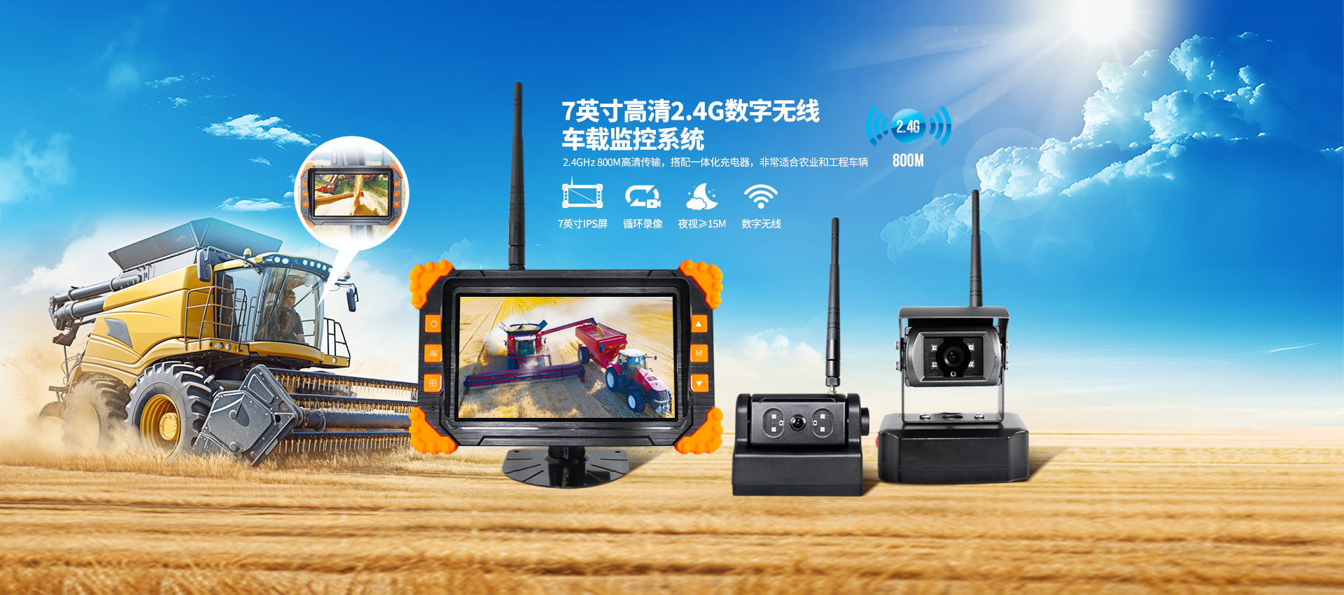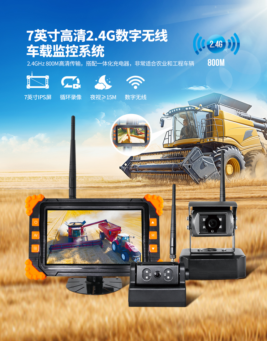 • 7英寸高清2.4GHz數字無線車載監控系統 (SF-7012SN)